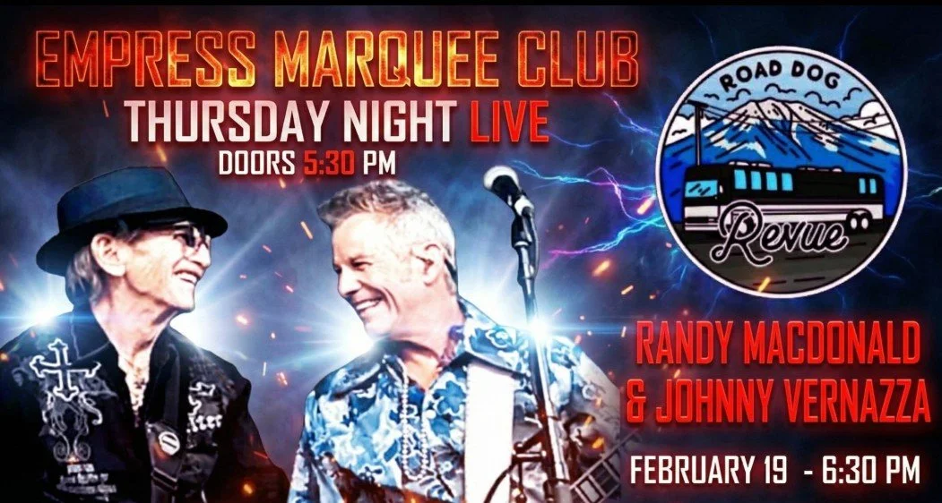 Turn your Thursday into a full-on good-time night with Road Dog Revue, led by veteran bassist Randy McDonald—a longtime driving force behind Tommy Castro & The Painkillers—live at the Empress Marquee Club on Thursday, February 19.