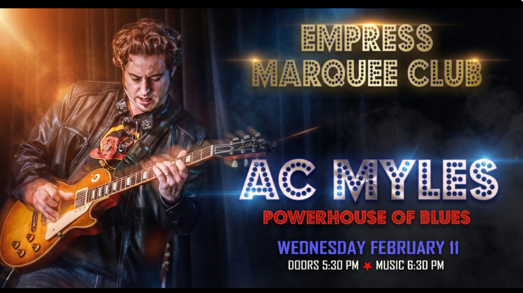 Turn your midweek into something powerful with Wednesday Blues at the Empress Marquee Club, featuring blues-rock guitarist and vocalist A.C. Myles.Doors open at 5:30 PM, with dinner available, and the show begins at 6:30 PM.A.C. Myles is a California-based artist known for fiery guitar work,soulful vocals, and an uncompromising live presence. Rooted in classic electric blues of the ’60s and ’70s and fueled by modern blues-rock energy, his sound bridges tradition
