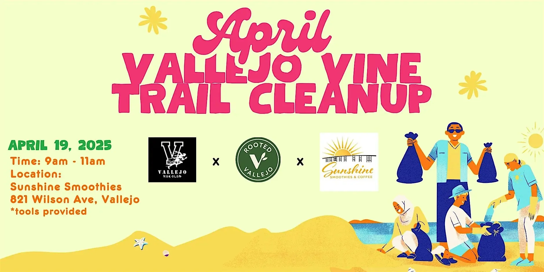 Join Rooted Vallejo and volunteers from Vallejo Run Club (and get a FREE small smoothie offered by Sunshine Smoothies!!!) during a fun day of beautifying our city! We'll be gathering at Sunshine Smoothies and cleaning up the trail along the wetlands and Wilson Ave. Join us! Get outside, meet cool people, and make a real difference in our community.