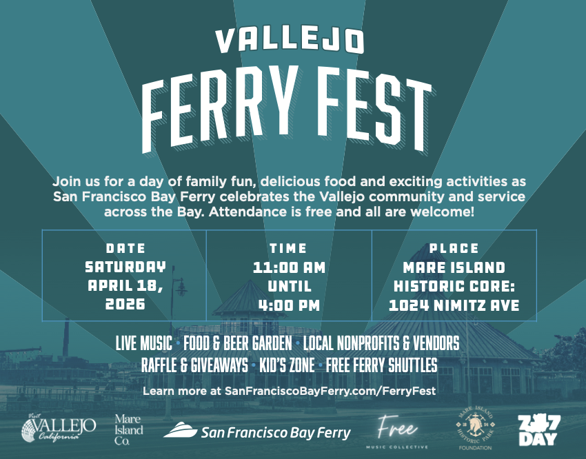 Bring the whole family and join the San Francisco Bay Ferry team for a fun-filled day on the Mare Island waterfront. Enjoy food trucks, local vendors, live music, raffles, giveaways, and more! Save the date for this unique, FREE waterfront celebration. (RSVP kindly suggested).