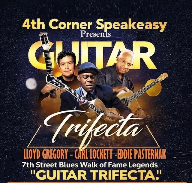 Bay Area’s Most Skilled Guitarists & 7th St. Blues Walk of Fame Honorees. Independently, these guitarists are three of the most skilled musicians in the Bay Area. While each has played on stage and in the studio with a variety of music industry giants across the musical spectrum, Eddie Pasternak, Lloyd Gregory, and Carl Lockett have also individually proven themselves worthy of the center stage with the attention they each command. They have united as a trio to spotlight what can only be described as a guitar trifecta. Friends for decades, they share a total of 150 years as professional musicians, each of them having started in his youth.