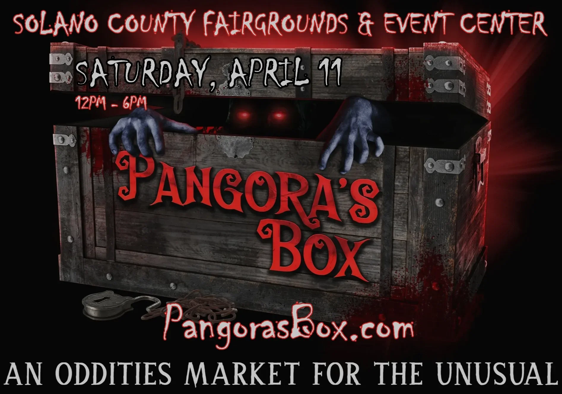 Pangora's Box is pleased to introduce you to our new Annual Oddities Market on April 11 2026.This is not your ordinary market of the strange and unique. You will find original handmade items made by some of the bay area's most talented artist. All your Macabre fantasy's and adventures can be found right here At Pangora"s Box. This is a new adventure where you will find everything your heart desires. You will find amazing pieces from taxidermy, wet specimens, dark art prints, horror themed items, gothic, steampunk and a huge assortment of all things strange. Get tickets now to come meet our wonderful group of Pangorians.