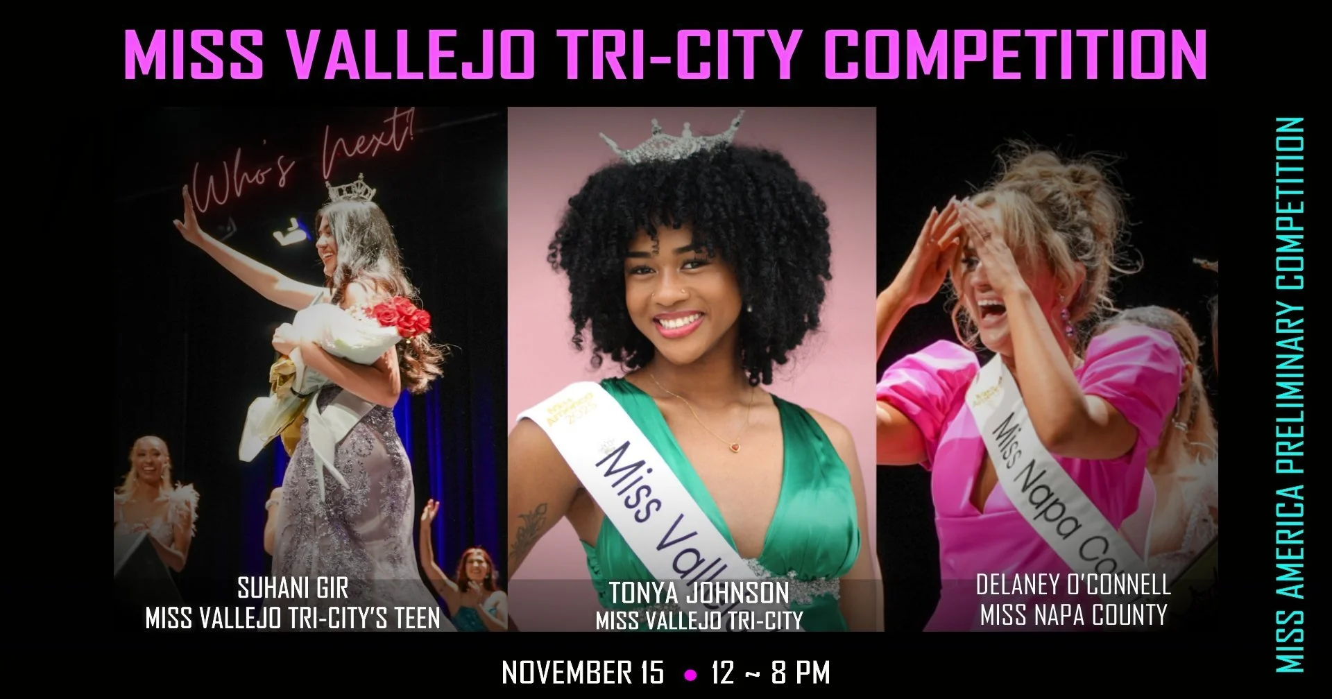 Join us for a Miss America Preliminary competition where we crown Miss Vallejo/Tri-City, Miss Napa County & Miss Vallejo/Tri-City's Teen!
