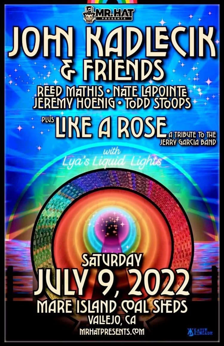 Mr. Hat Presents John Kadlecik & Friends (2 sets) at the Mare Island Waterfront Arts Park in Vallejo, CA. Features the incomparable John K (Furthur, Dark Star Orchestra, Melvin Seals & JGB) with Reed Mathis (Billy & The Kids), Jeremy Hoenig (JGB), Nate LaPointe (Cubensis), and the Todd Stoops (Fellowship of the Wing). With an opening set by Like a Rose, a tribute to the Jerry Garcia Band featuring Cheryl Rucker and Stephanie Mandella on vocals, JP McLean on bass, Ana Elva on drums, Jeffrey Quigley on keys, and Jay Wilcox on guitar. 🌹