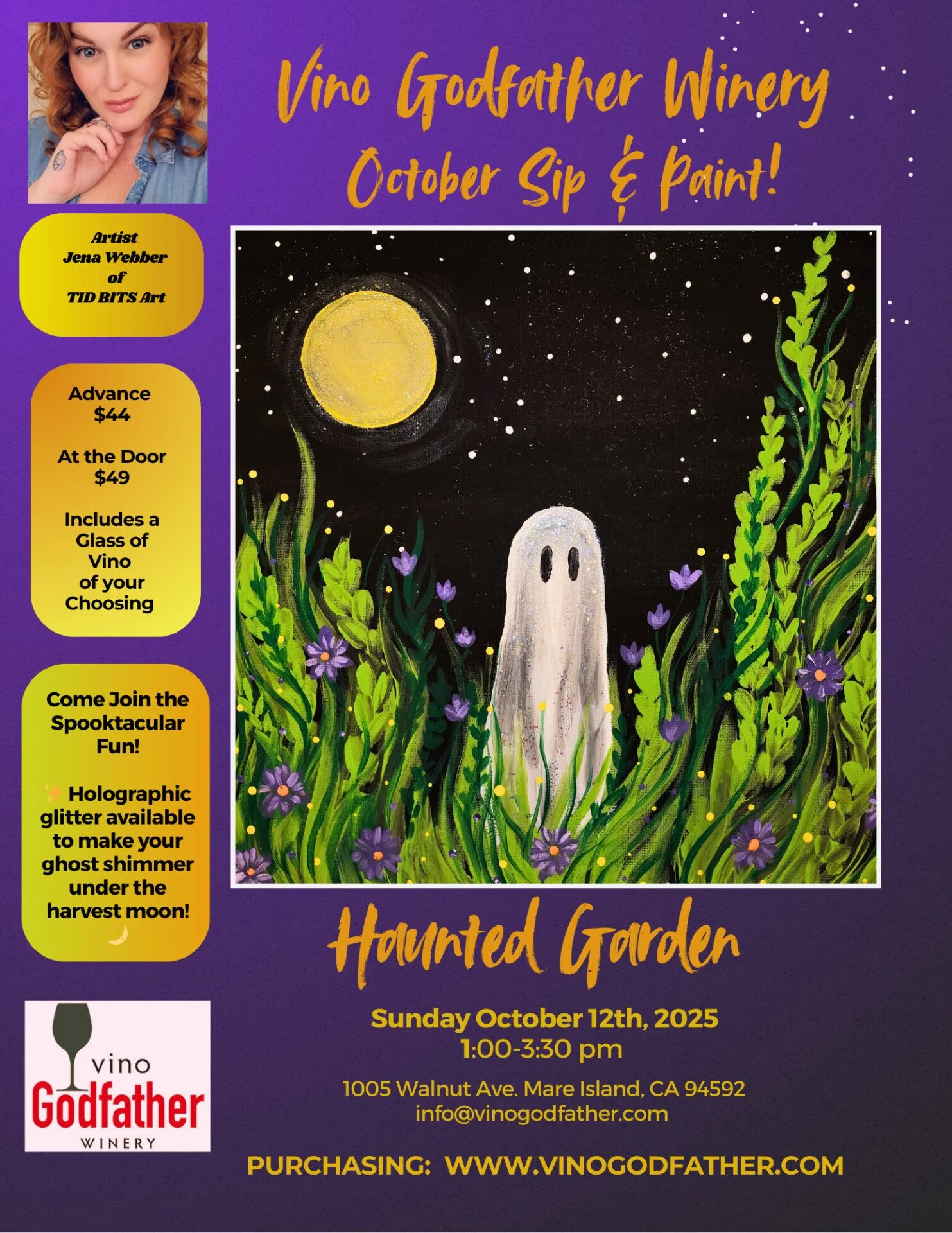 Treat yourself to a fun afternoon in our outdoor garden creating your very own masterpiece with local artist/instructor, Jena Webber. She will guide you through, step-by-step, as you paint your "Haunted Garden" created specially for you on a 16x20 canvas. Unwind and celebrate a beautiful day with special friends while painting, sipping, listening to great music and enjoying an afternoon under the shade trees.