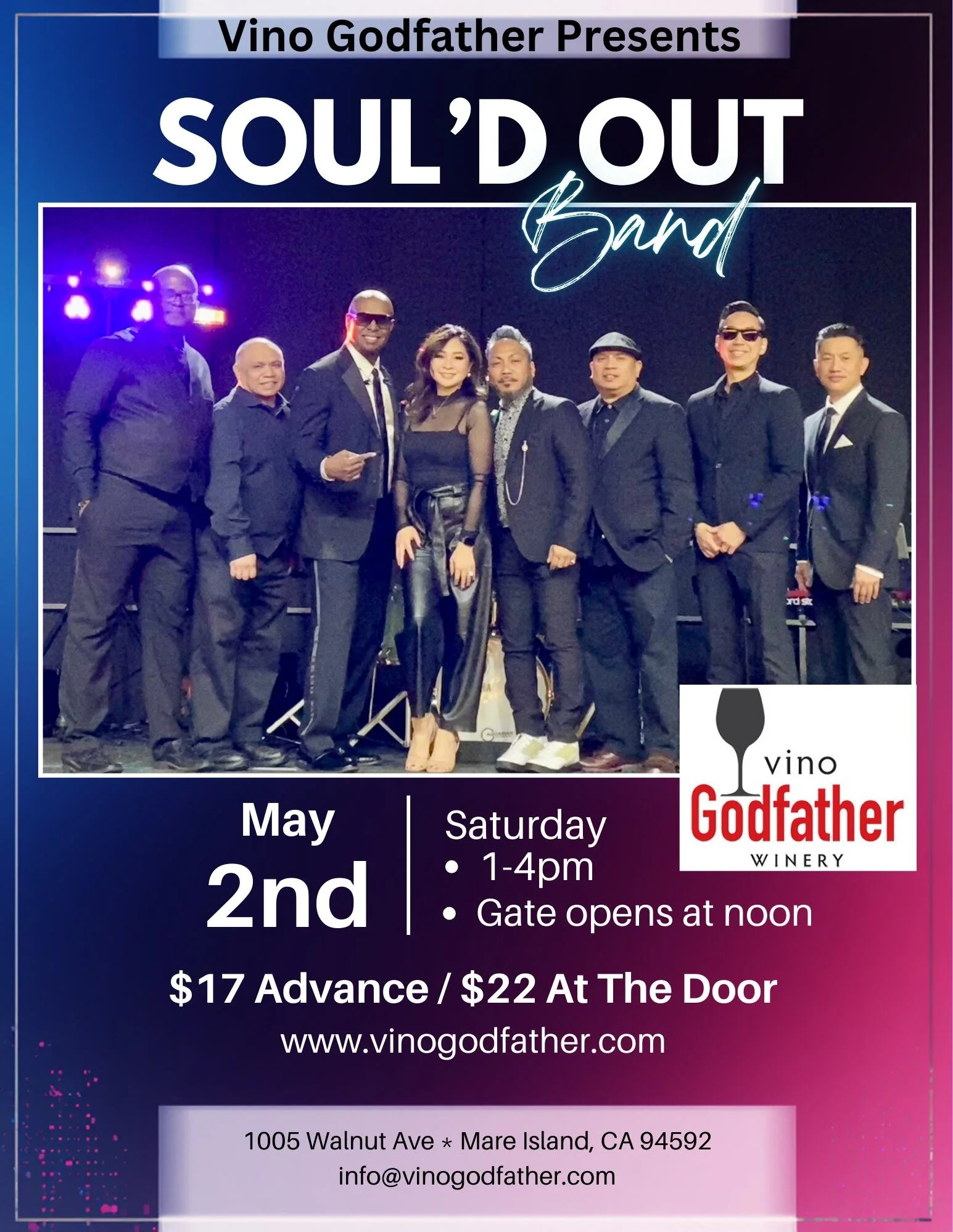 So come join us and experience the musical magic of Soul'd Out! Whether you're looking for some fun in the sun listening to great music, or a romantic afternoon sipping on your favorite wine and dancing, this band has got you covered.