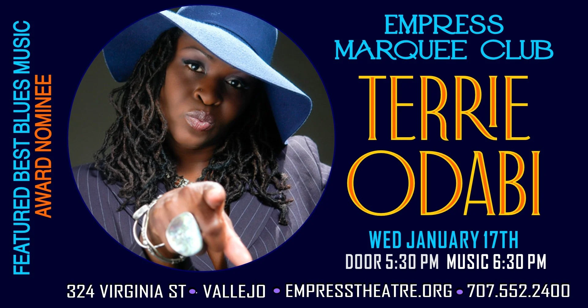 Only a singer with Odabi’s combination of power and finesse could hold her own amid those kinds of comparisons. What sets Odabi apart from so many of her peers are the different shades of hurt, longing, bliss, and depth she brings to the music. The distinguishable character of her voice rings out with a rousing revival of faith and reverence that has a drenching rejuvenation and sacred renascence complexity. Her abundant soul and improvisational prowess has made her a crucial contributor to today's Blues scene. Warmly embraced by Blues fans and peers alike, Terrie Odabi is one of the most respected talents in the Blues genre.
