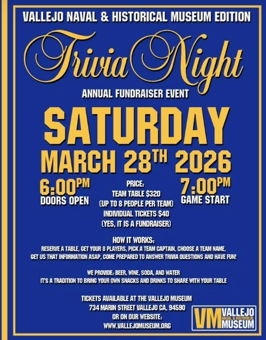 Trivia Night at the Vallejo Museum is on Saturday, March 28th!
