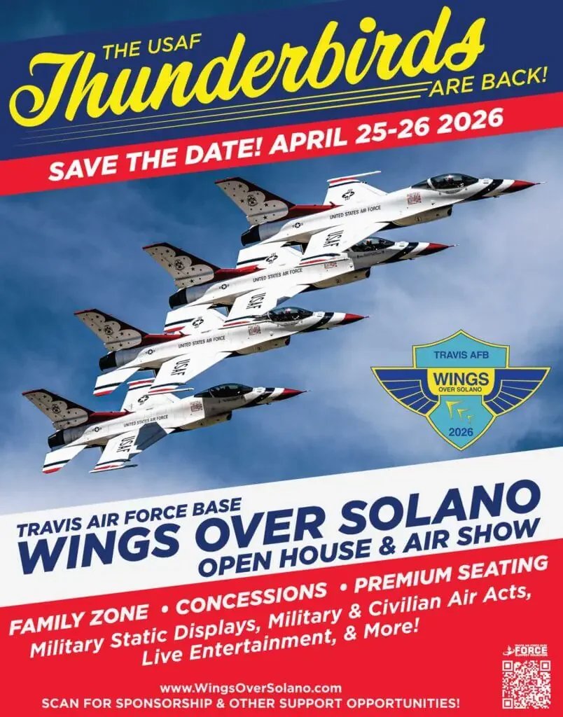 Calling all Solano County - Wings Over Solano Airshow and Open House Weekend at Travis AFB on Saturday and Sunday, April 25 & 26, 2026.